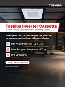 Looking for seamless, energy-saving air conditioning for your office, showroom, restaurant, or commercial space? TOSHIBA’s Inverter Cassette AC is engineered for high performance with low noise and maximum coverage.
